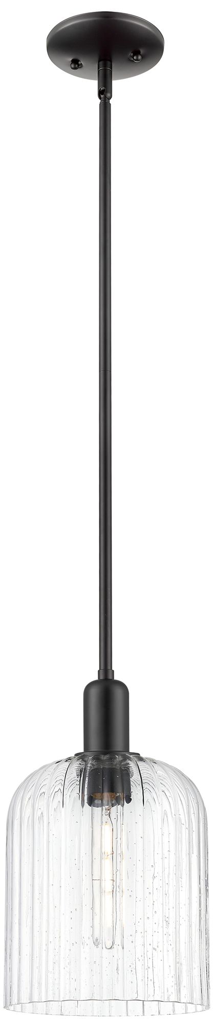 Downtown Bridal Veil 8"W Black Mini Pendant w/ Seedy Deco Swirl Shade