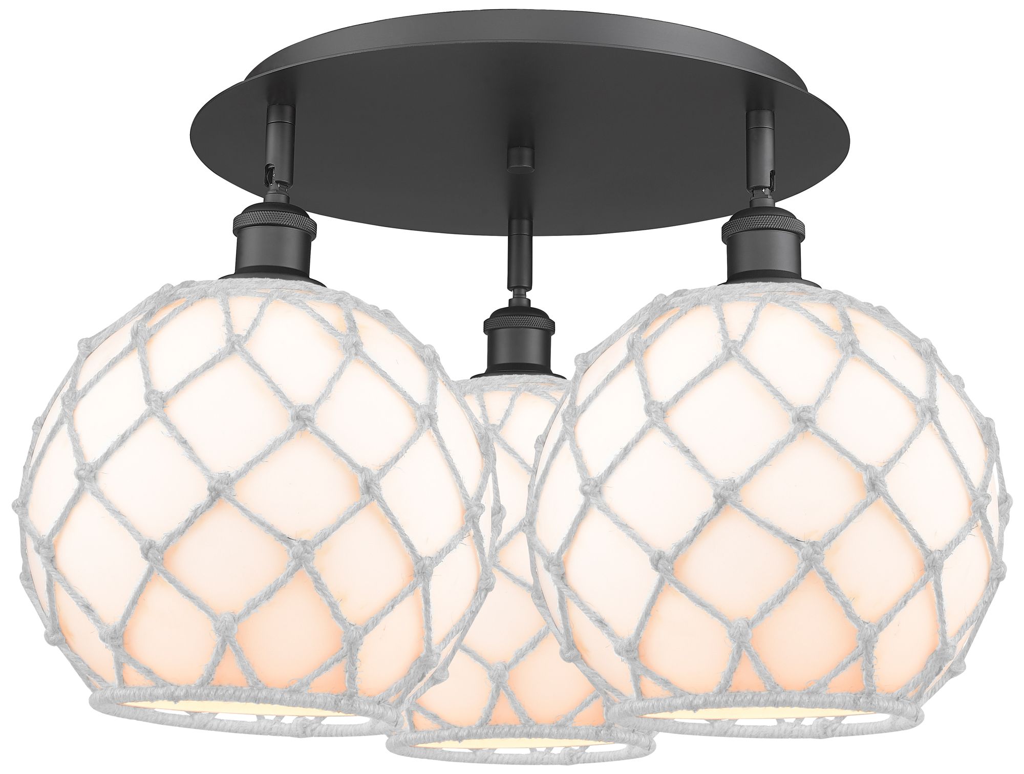 Ballston Farmhouse Rope 22"W 3 Light Black Flush Mount w/ White Shade