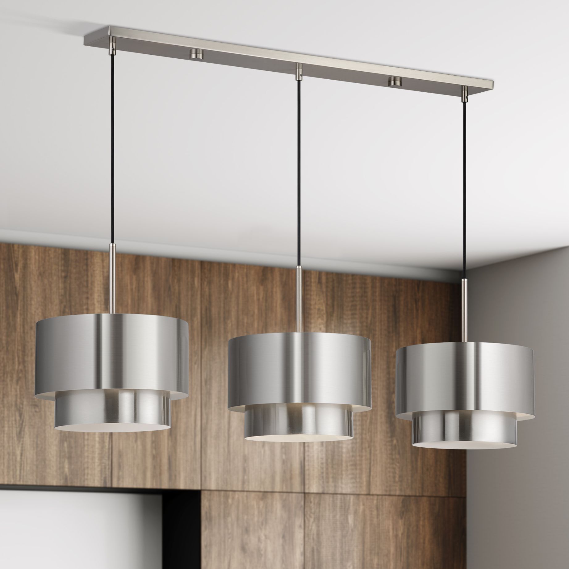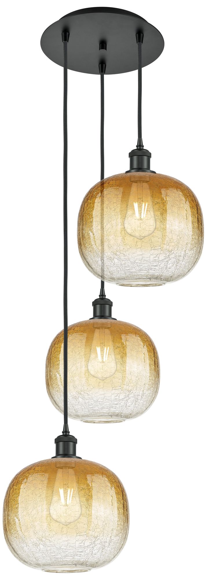 Exos 16" Wide 3-Light Black Pendant w/ Flax Shade