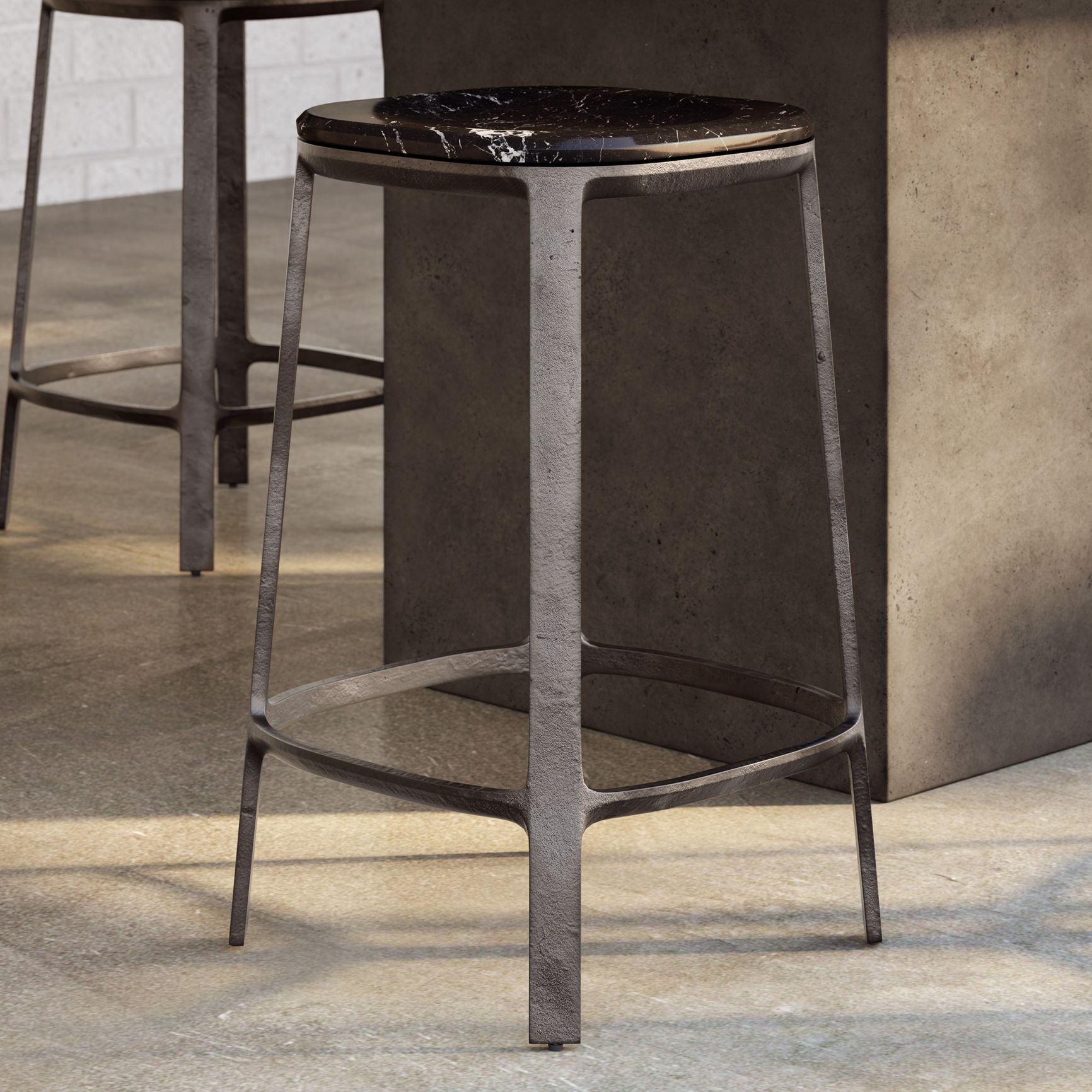 Marbelle Alfie Marble 16.8" Wide Fantasy Black Counter Stool Bronze Frame