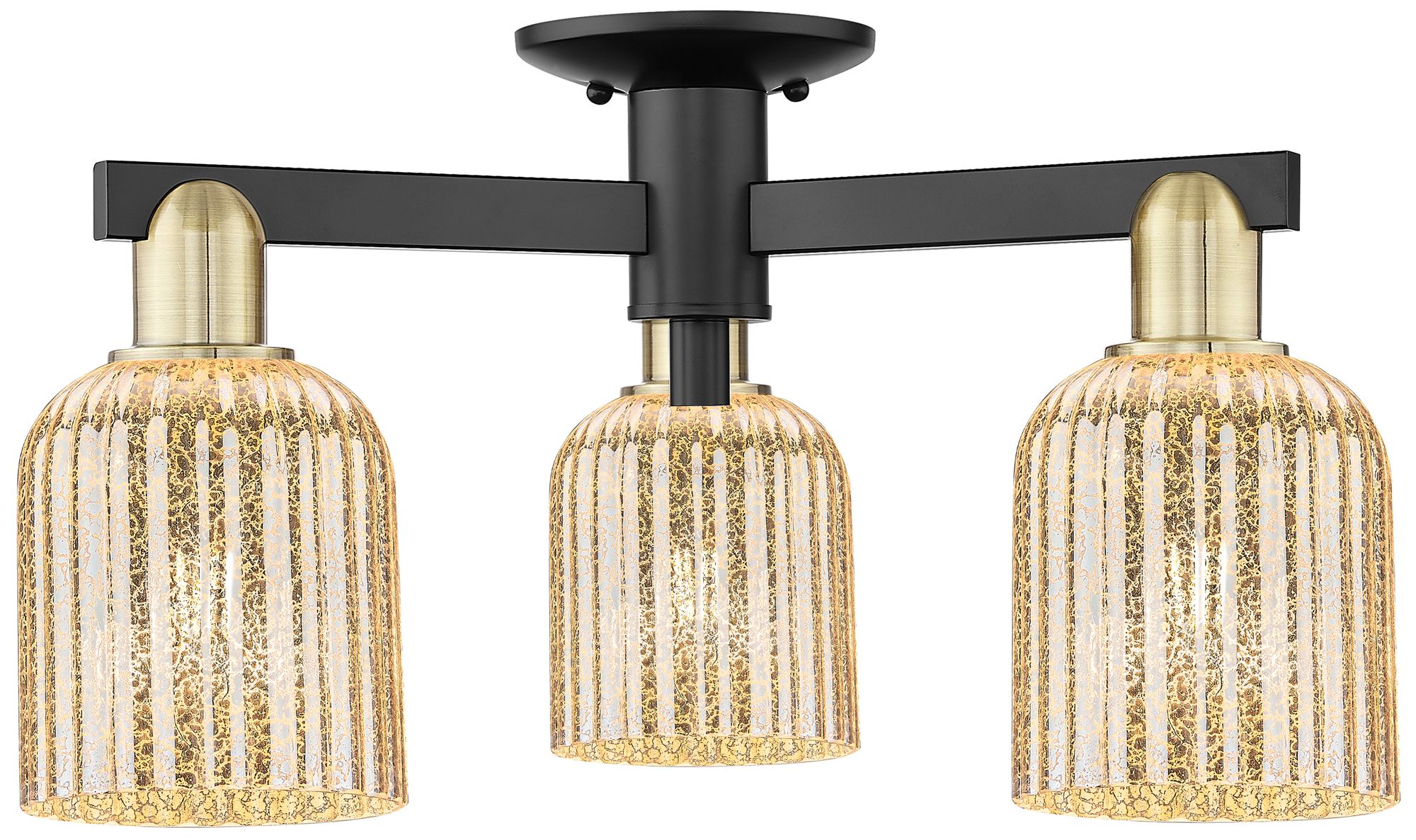 Bridal Veil 23"W 3 Light Black Brass Semi-Flush With Mercury Shade
