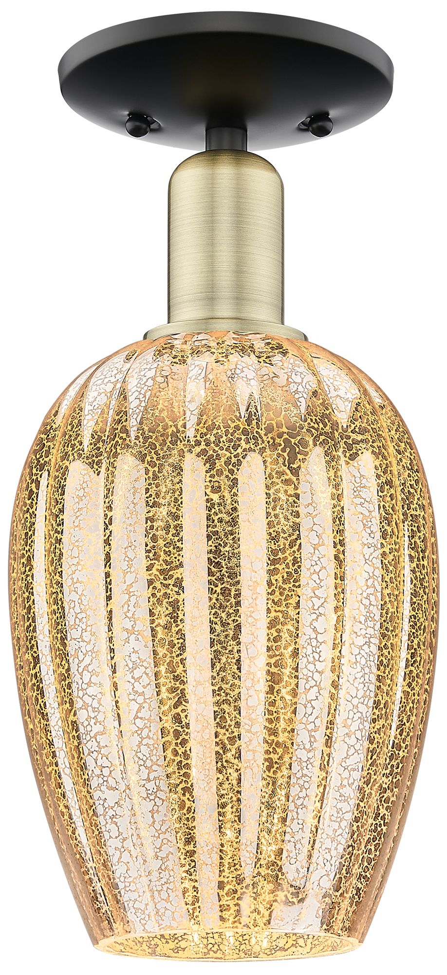 Preston 6"W Black Antique Brass Semi-Flush With Mercury Flute Shade