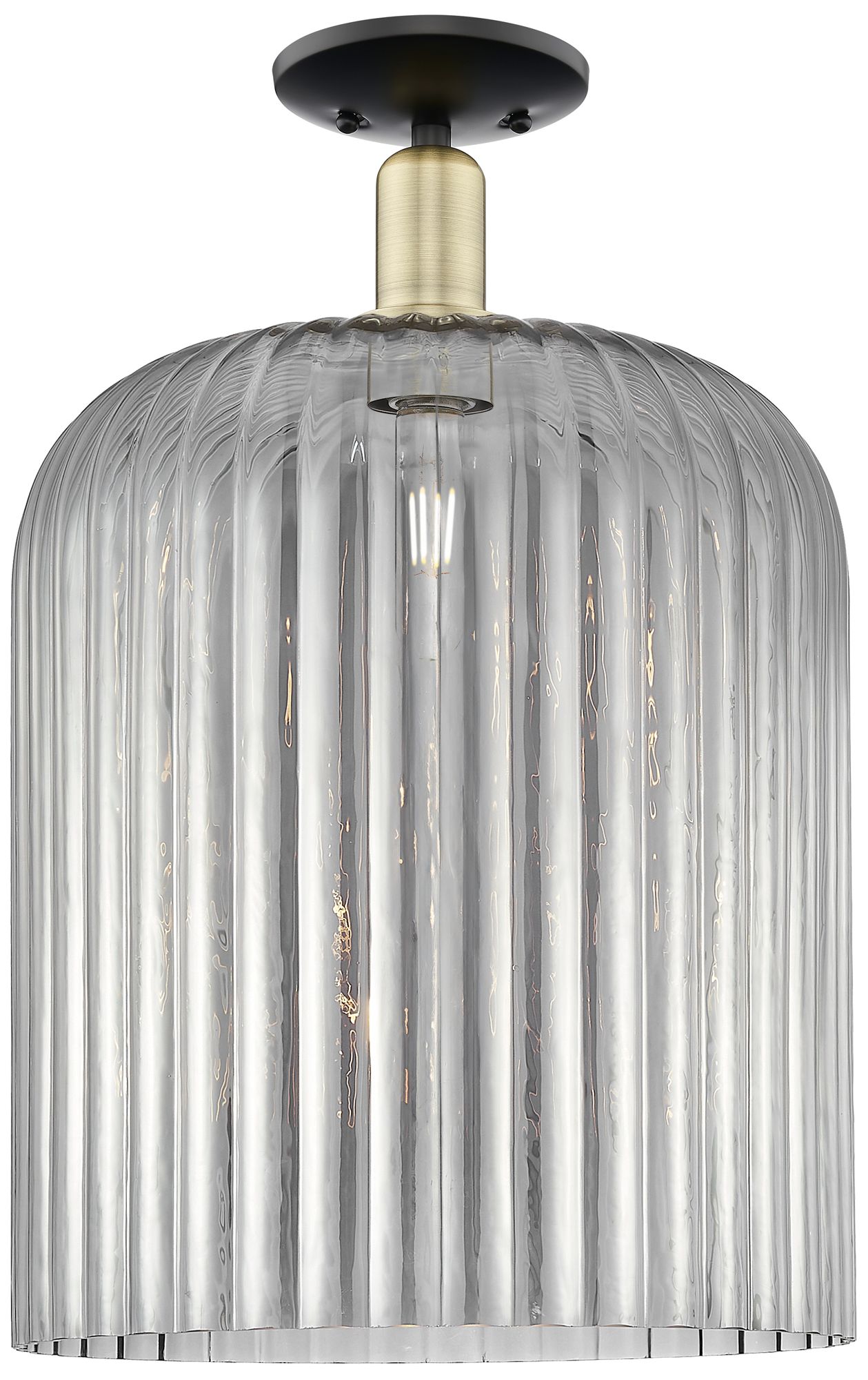 Bridal Veil 12"W Black Antique Brass Semi-Flush With Light Smoke Shade