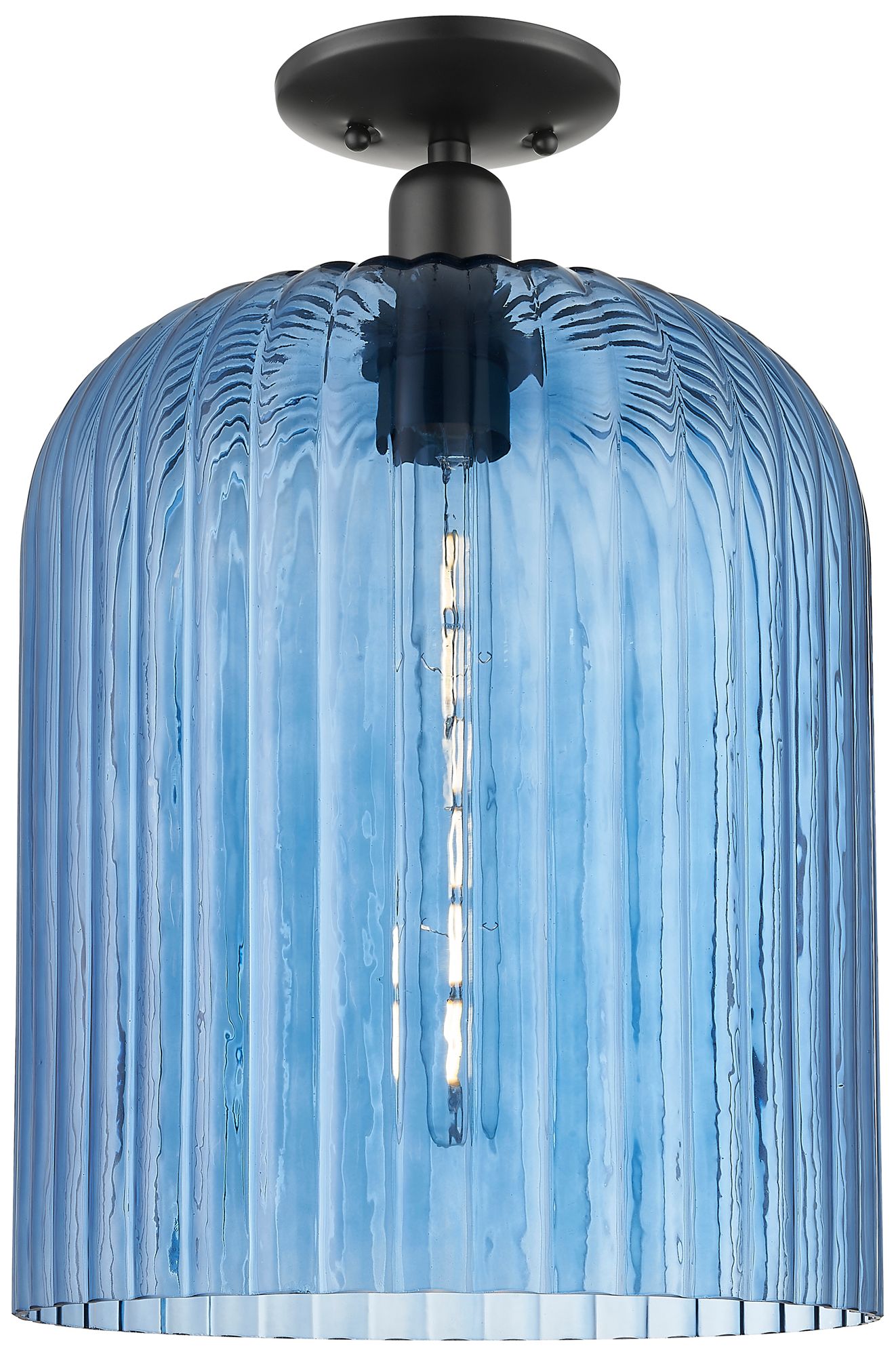 Downtown Bridal Veil 12"W Matte Black Semi Flush Mount w/ Blue Shade