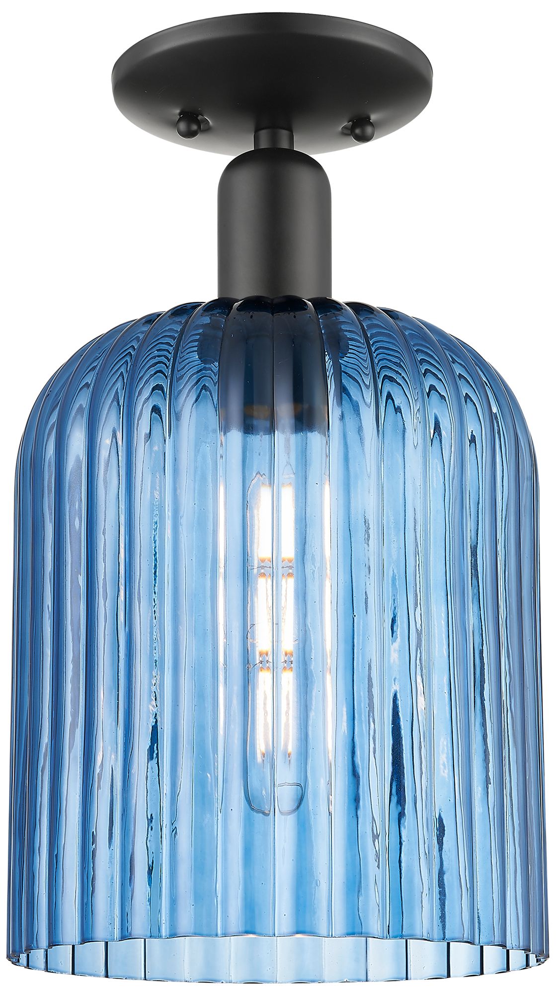 Downtown Bridal Veil 8"W Black Semi Flush Mount w/ Blue Swirl Shade