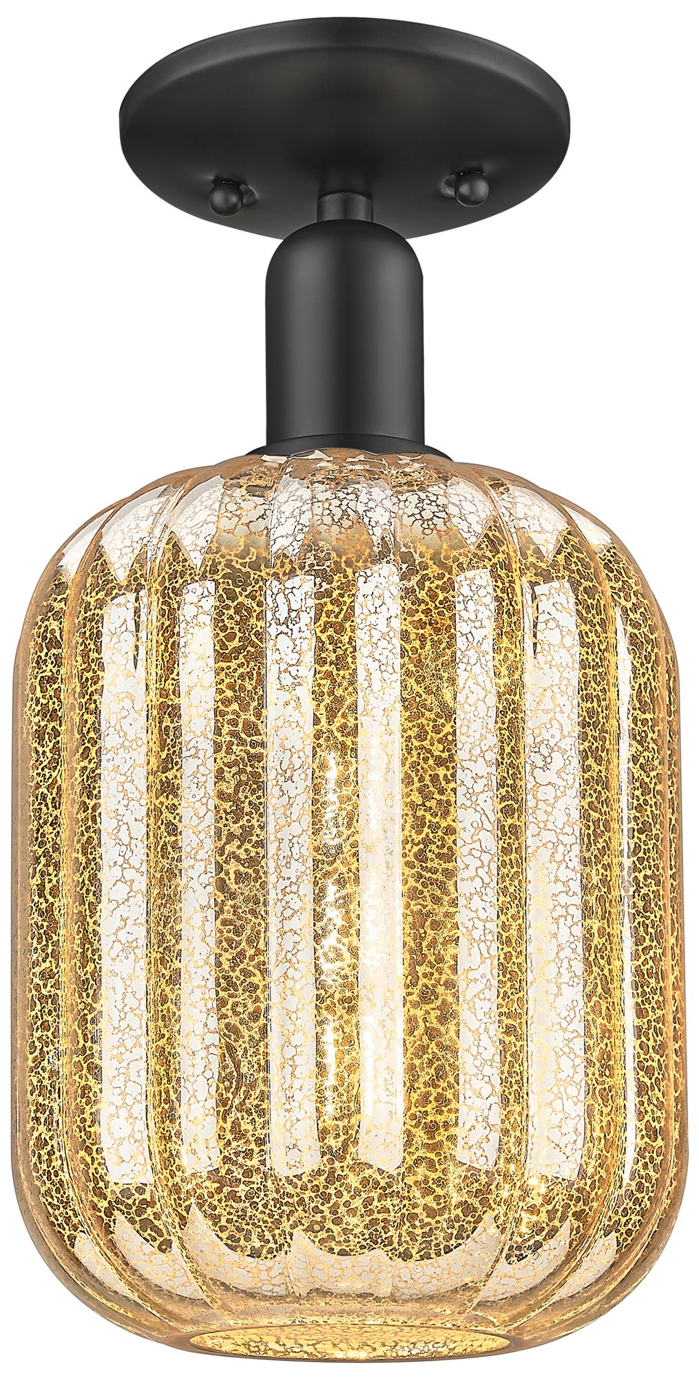 Downtown Preston 7"W Matte Black Semi Flush Mount w/ Mercury Jar Shade