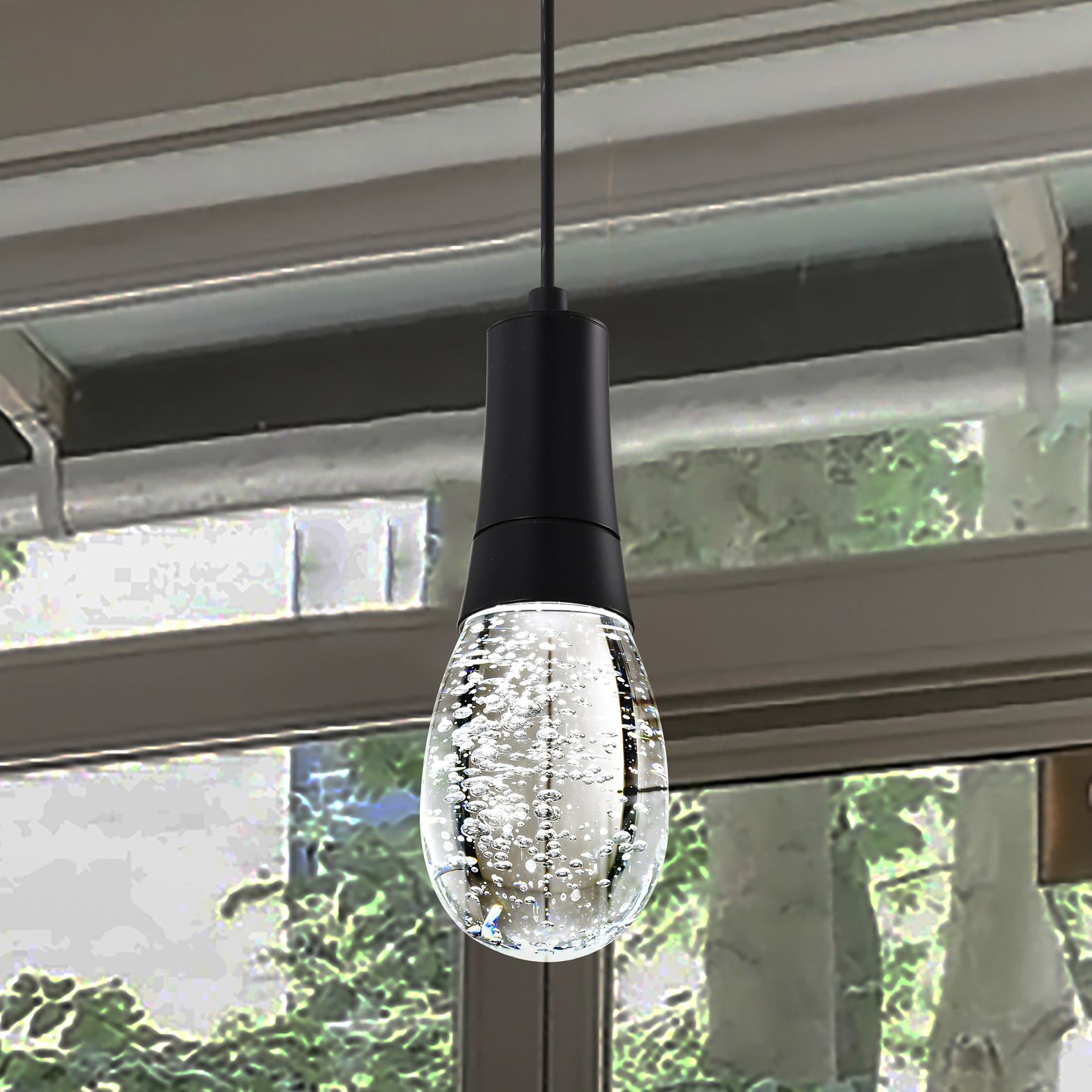 Bransel; 1 Light; Mini Pendant; Matte Black Finish w/ Clear Seeded Glass