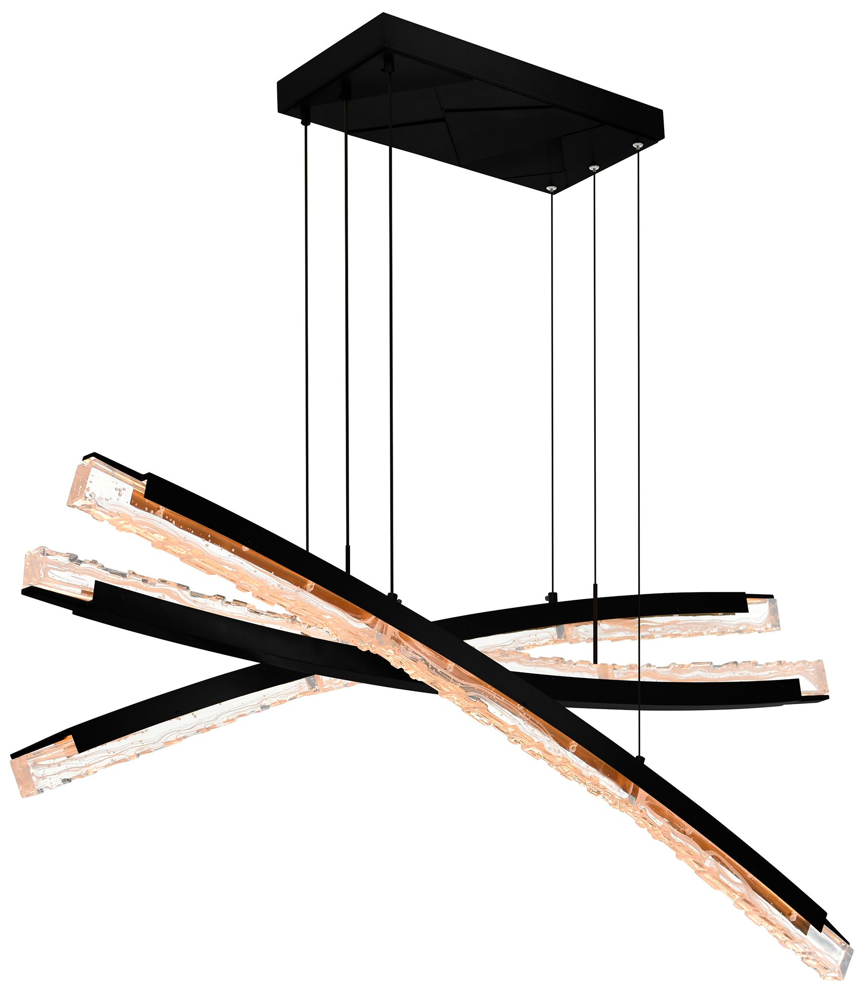Saber Integrated LED 50in Black Chandelier with Handcrafted Glass