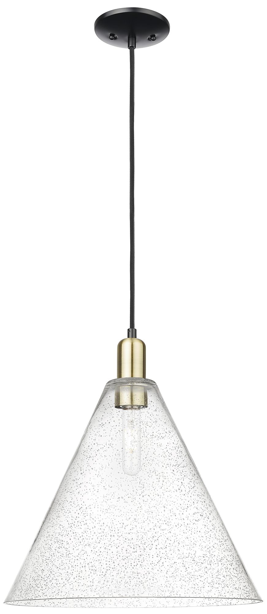 Arcadia Berkshire Glass 16"W Black Brass Cord Pendant w/ Seedy Shade
