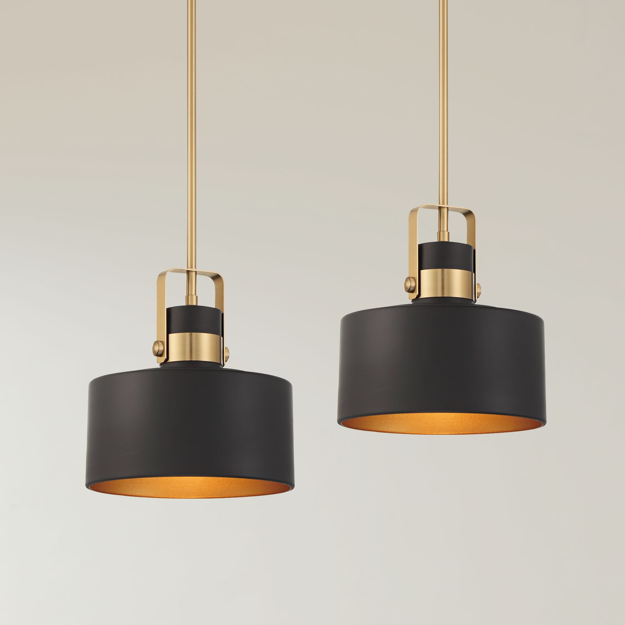 Possini Euro Courtney 10" Soft Gold Matte Black Mini Pendant Set of 2