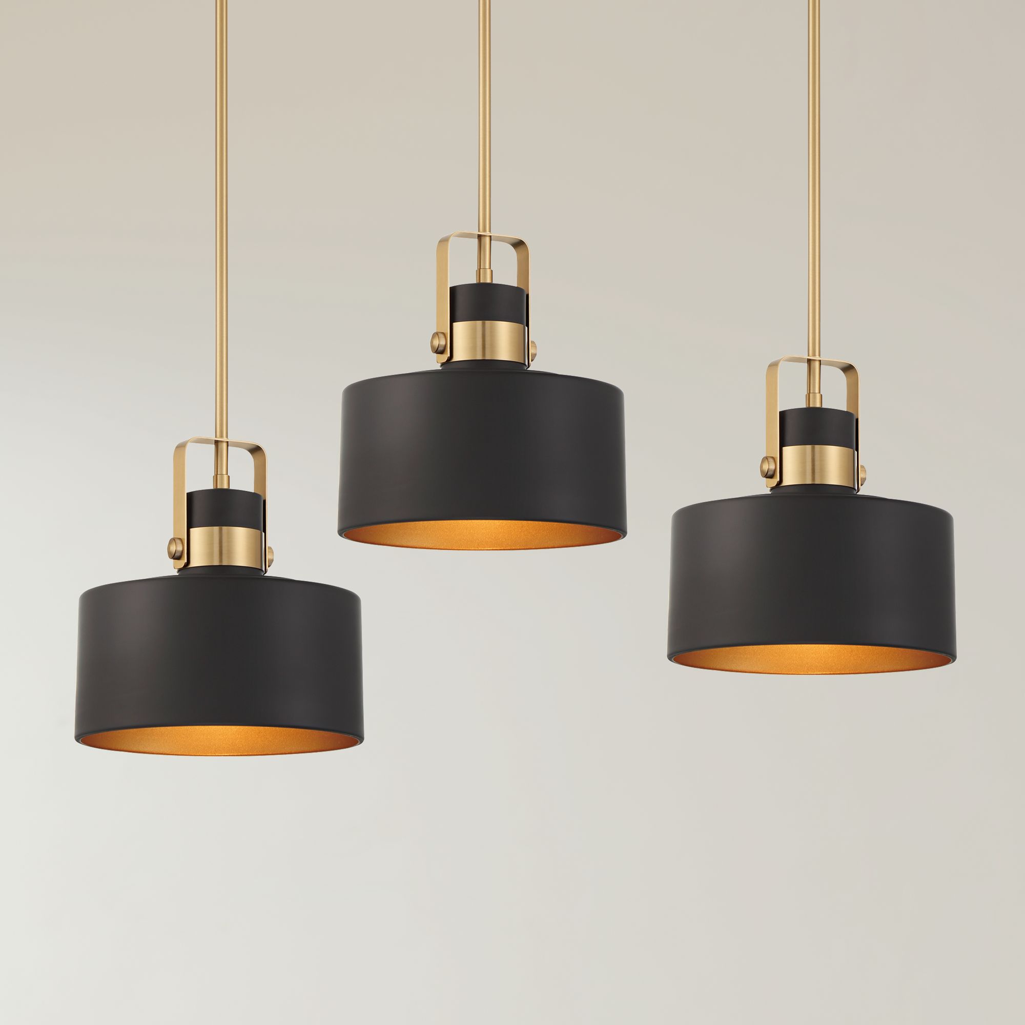 Possini Euro Courtney 10" Soft Gold Matte Black Mini Pendant Set of 3