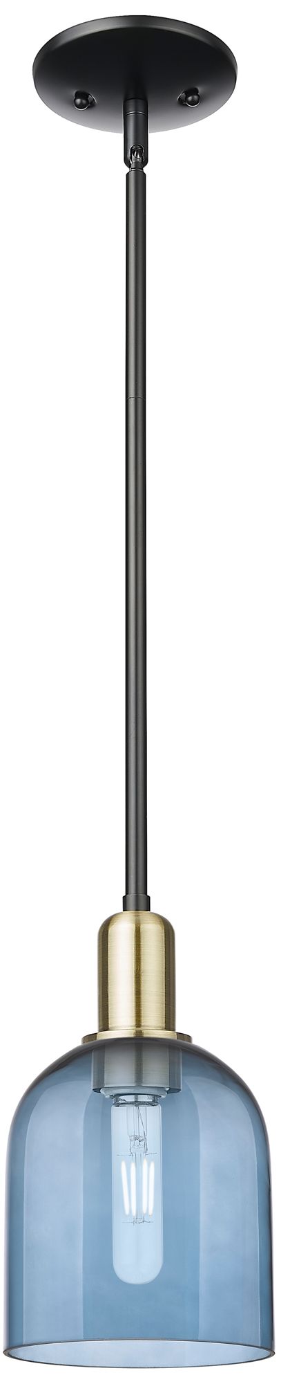 Arcadia Bella 6"W Antique Brass Cord Hung Mini Pendant With Blue Shade