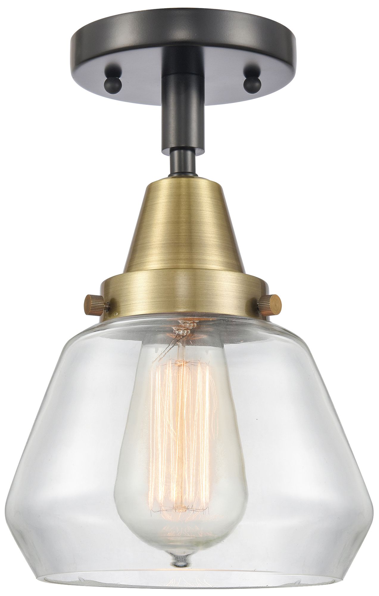 Caden Fulton 7" Wide Black Antique Brass Flush Mount With Clear Shade