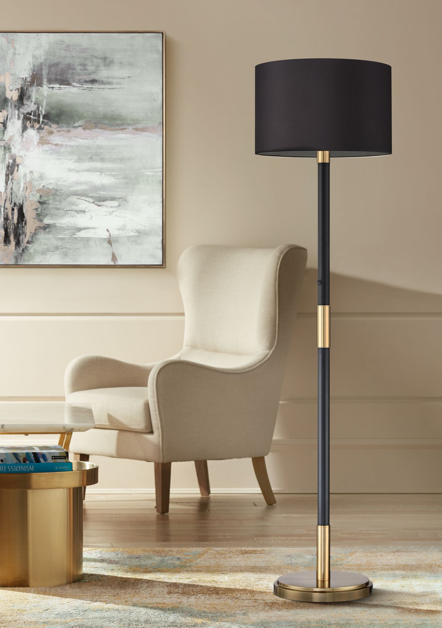 Possini Euro Ashanti 72.25" High Black Shade Light Blaster Floor Lamp