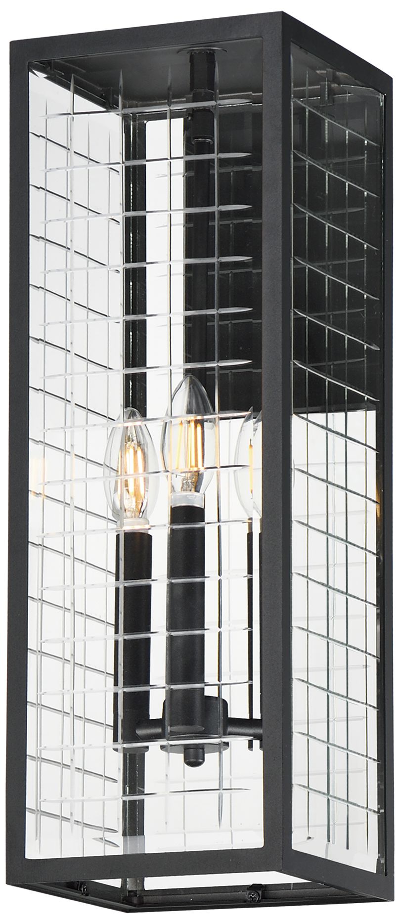 Shadow Box Small Outdoor Sconce - Black - Steel Accents - Clear Glass
