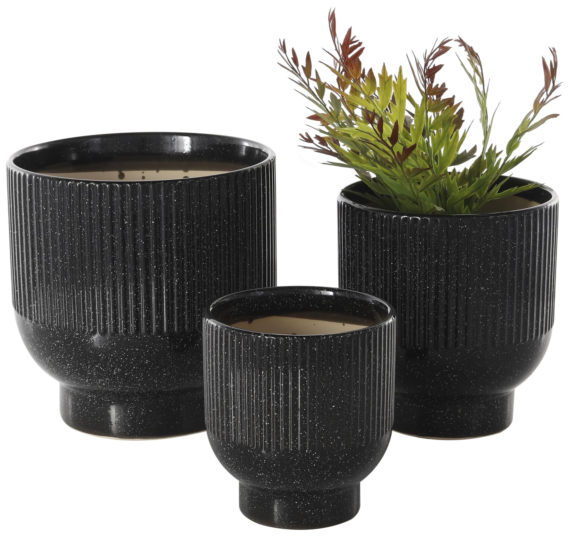 Black Ceramic Modern Planter, S/3 9", 8", 6"H