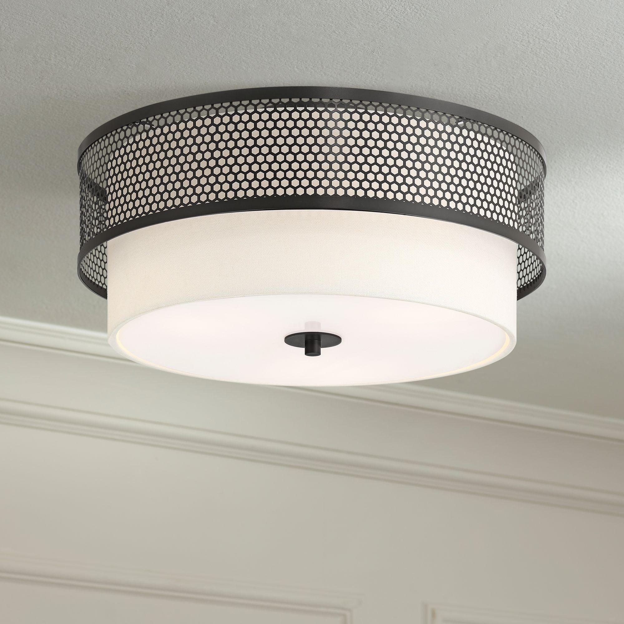 Possini Euro Marino 16" Wide Black and Linen 3-Light Ceiling Light