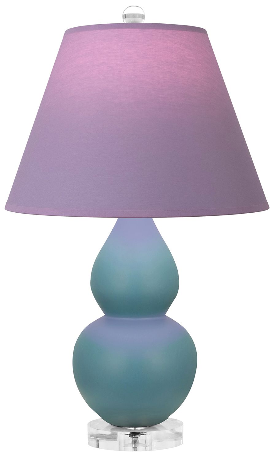 Double Gourd 22"H Steel Blue And Lucite Lamp w/ Plum And Lavender Shade