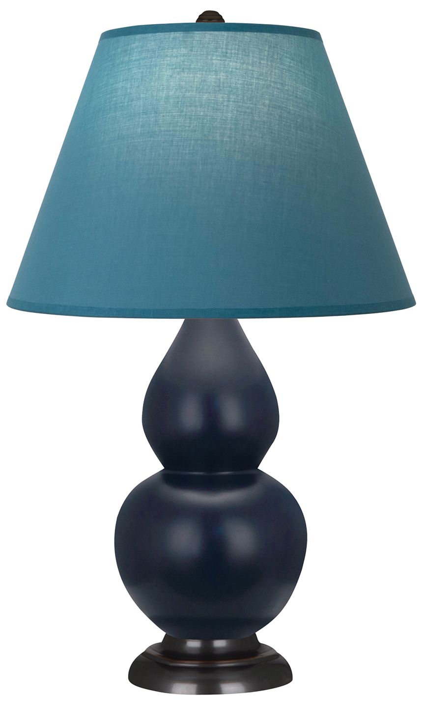 Double Gourd 31"H Matte Blue And Bronze Lamp w/ Navy And Gray Shade