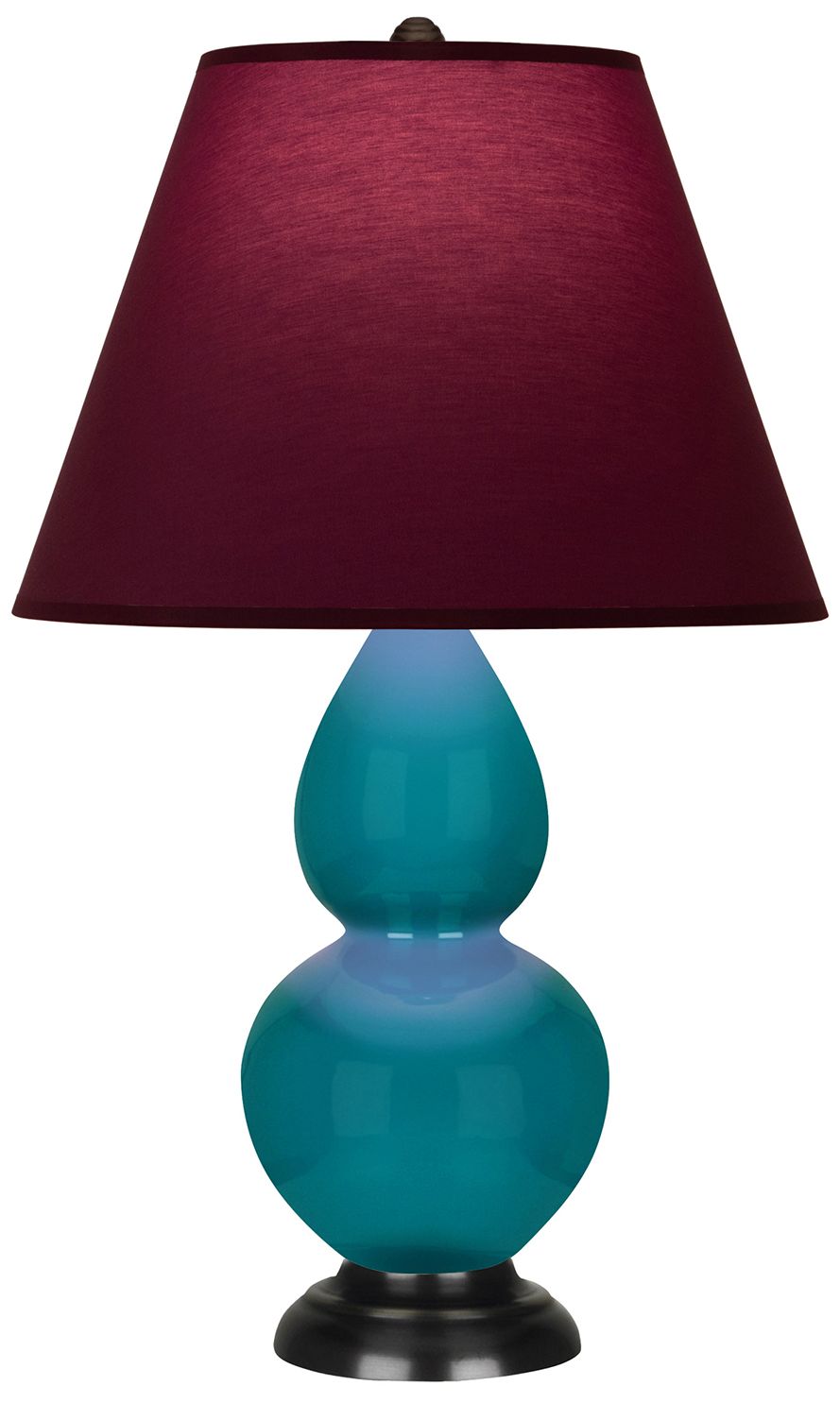 Double Gourd 23"H Peacock And Bronze Lamp w/ Plum And Lavender Shade