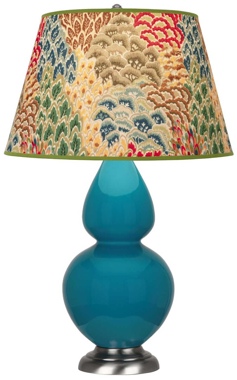 Double Gourd 31"H Peacock And Silver Table Lamp w/ Fall Floral Shade