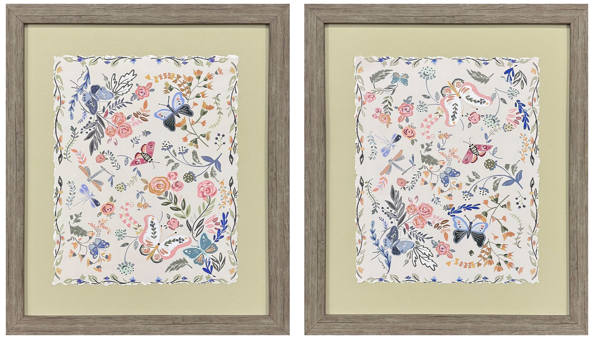 Garden Friends 23"W x 27"H Modern Framed Art Set of 2