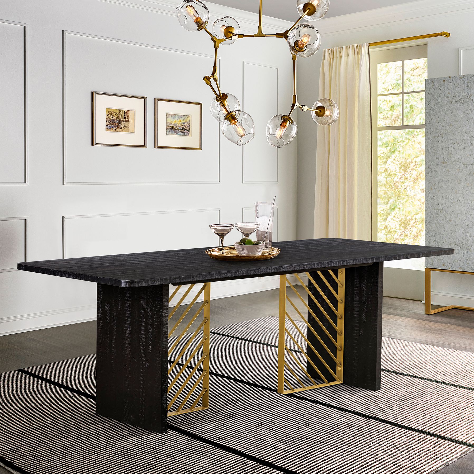 Monaco 86.6 in. Dining Table in Black Wood and Antique Brass Accent