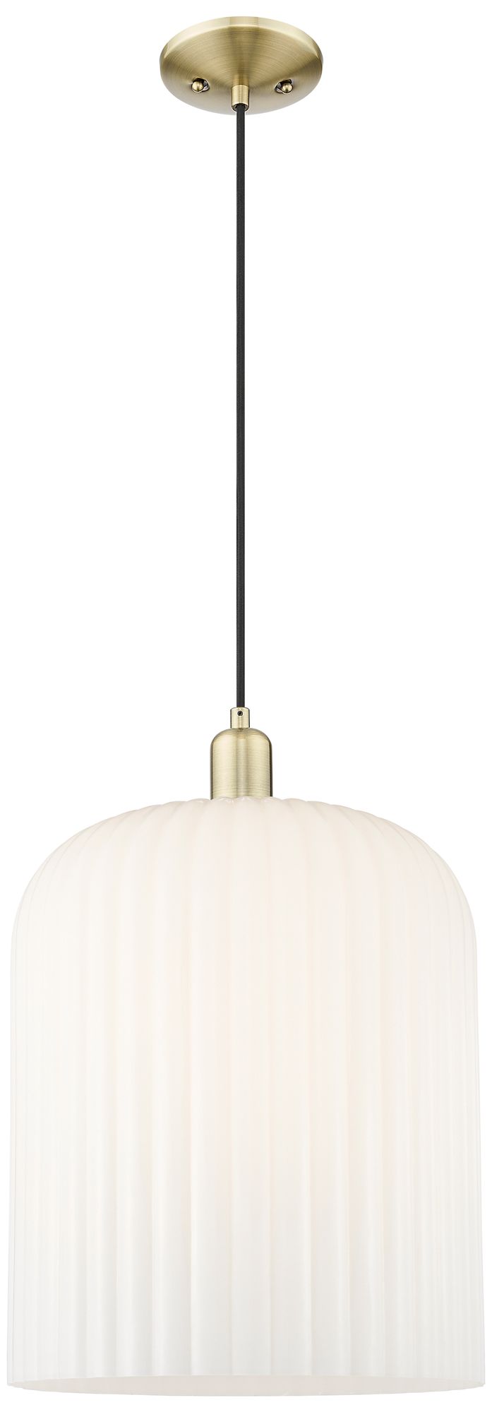 Bridal Veil 12"W Antique Brass Cord Mini Pendant With Gloss White Shade