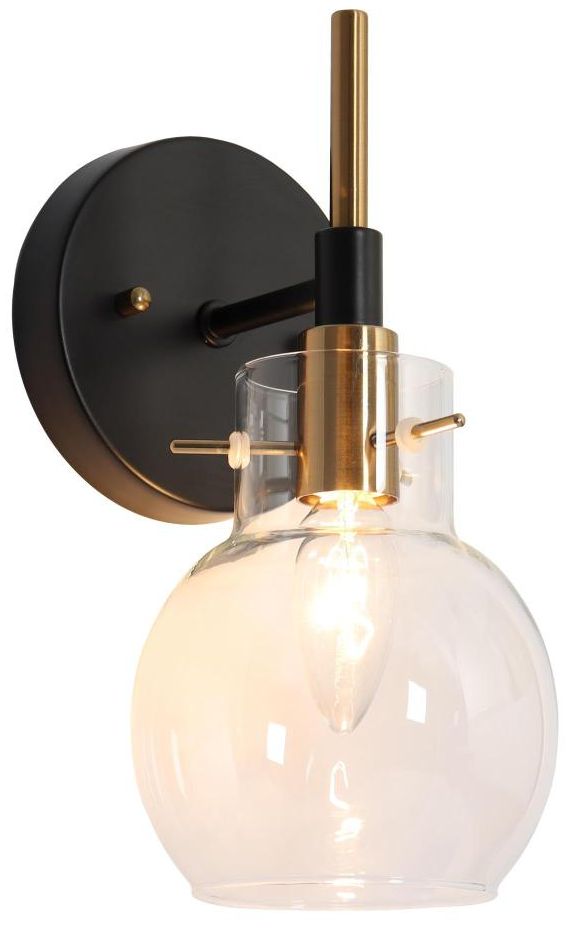 1-Light Black and Brass Bathroom Vanity Light