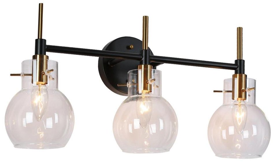 3-Light Brass and Black Vanity Light