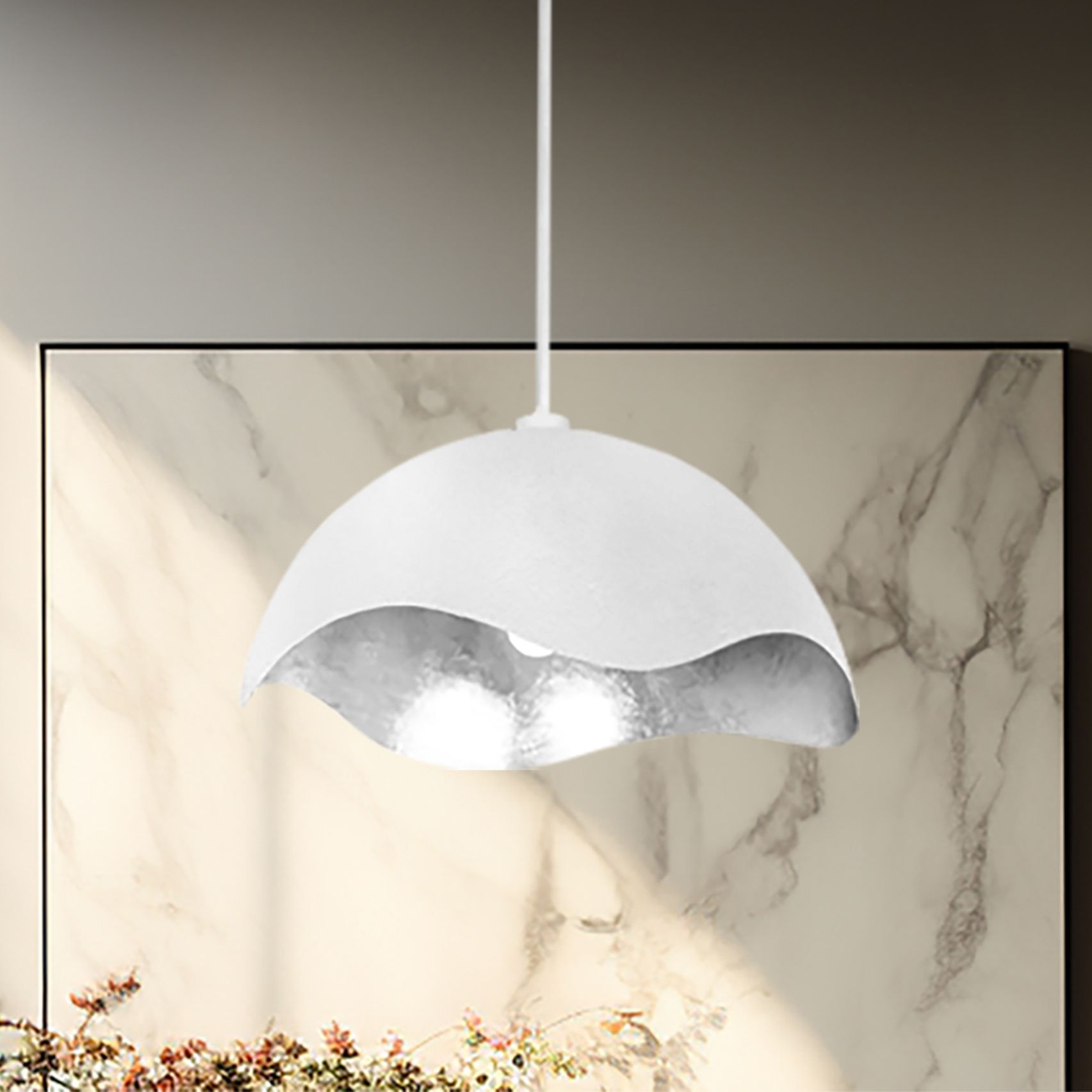 George Kovacs Eclos 1-Light 23.88-in Texture White with Silver Leaf Pendant