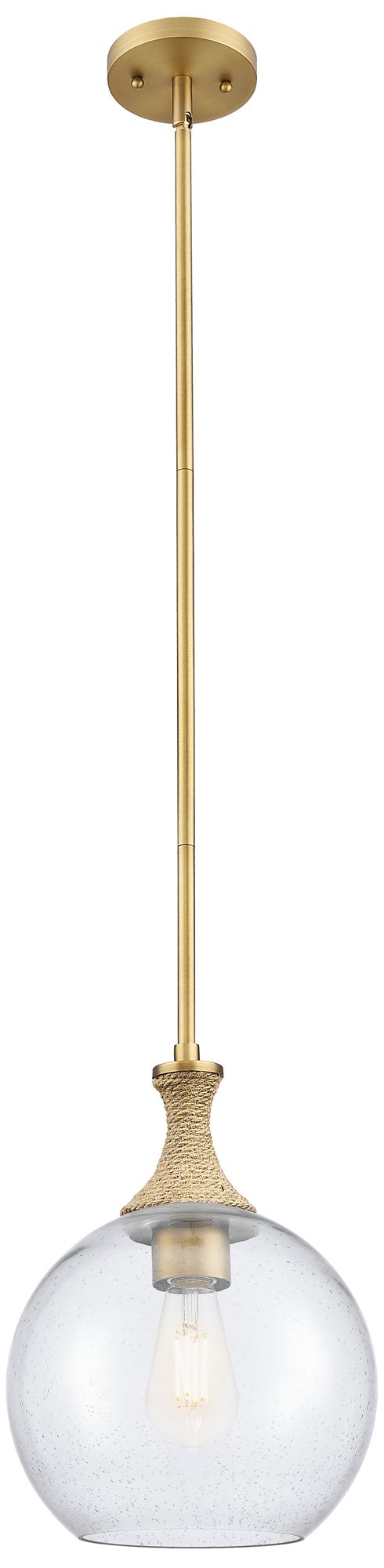 Astor 10"W Brass And Brown Rope Stem Mini Pendant w/ Seedy Shade