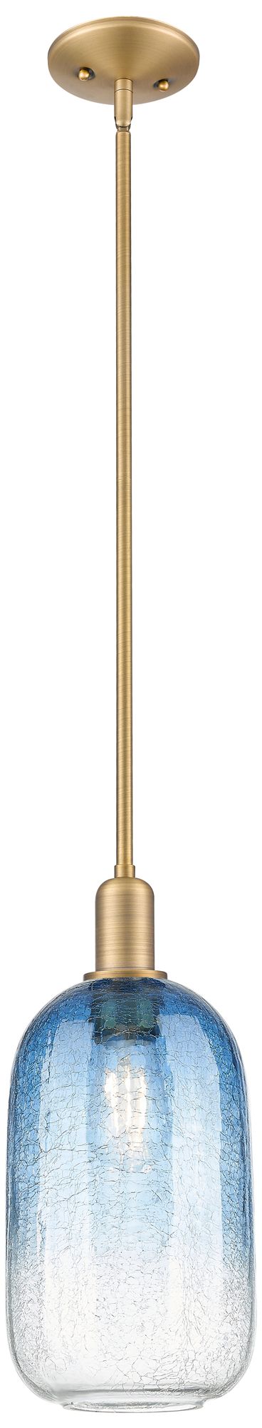 Downtown Brookhaven Cloche 7"W Brass Mini Pendant w/ Sapphire Shade