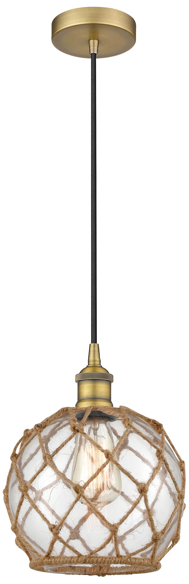 Edison Farmhouse 8" Brushed Brass Corded Pendant w/ Clear & Brown