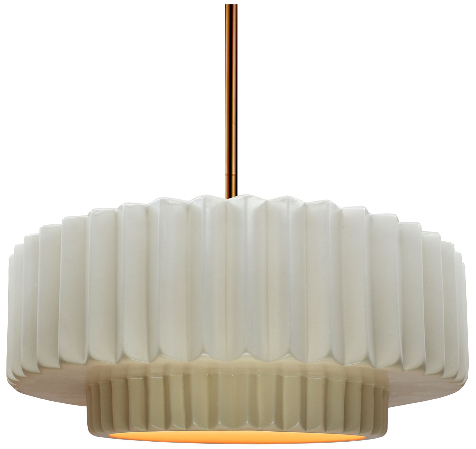 14.5"W Matte White/Gold Frame Polished Brass Tier Pleated Stem LED Pen