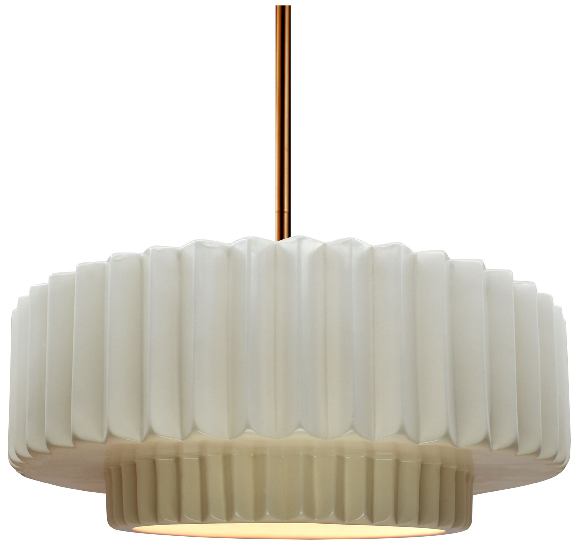 14.5"W Matte White Frame Polished Brass Tier Pleated Stem LED Pendant