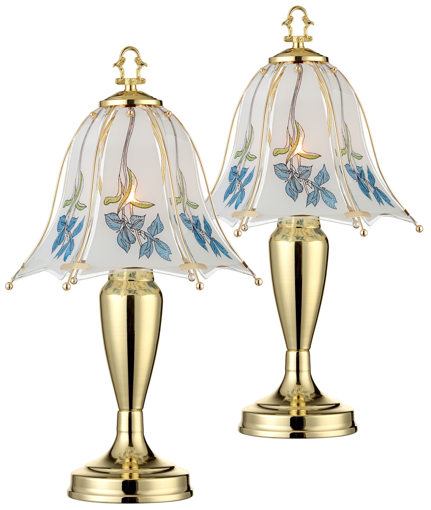 Regency Hill Bluebells Flower 18" High Touch On-Off Lamps Set of 2