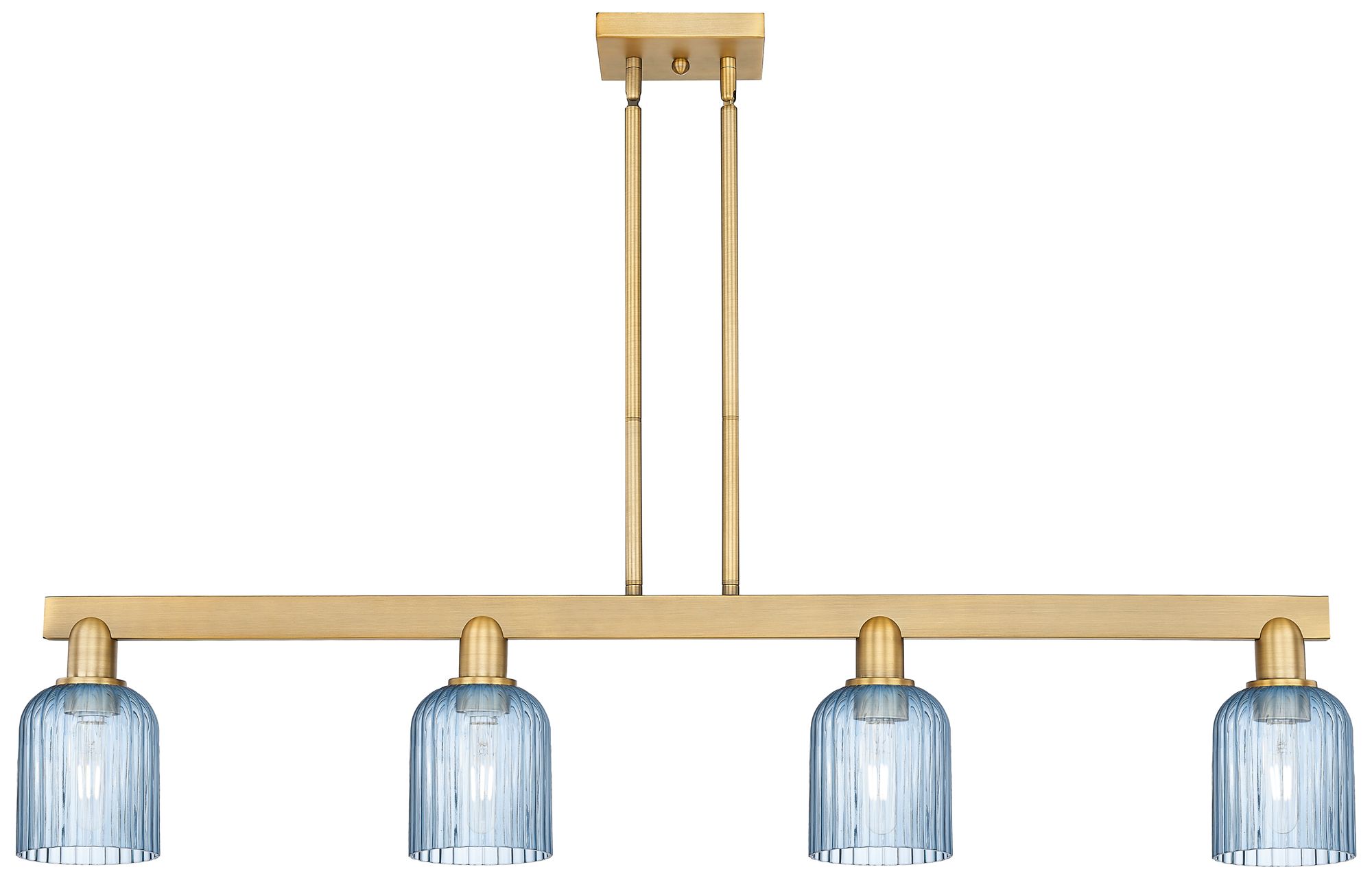 Bridal Veil 48"W 4 Light Brushed Brass Stem Island Light w/ Blue Shade