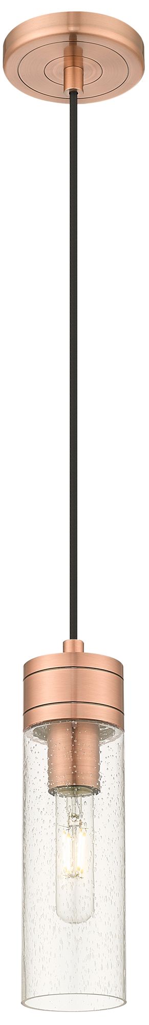 Crown Point Berkshire 8"W Brushed Brass Stem Pendant With Seedy Shade