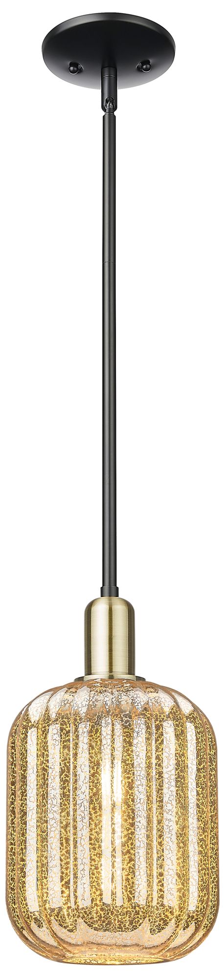 Preston 7"W Black Brass Stem Mini Pendant With Mercury Jar Shade