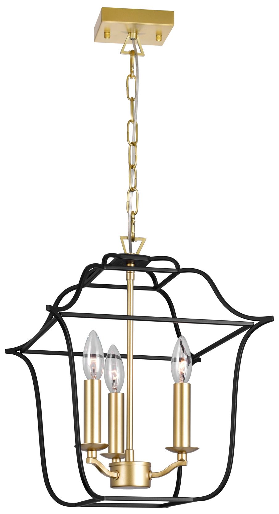 Tudor 3 Light 12in Satin Gold & Black Pendant