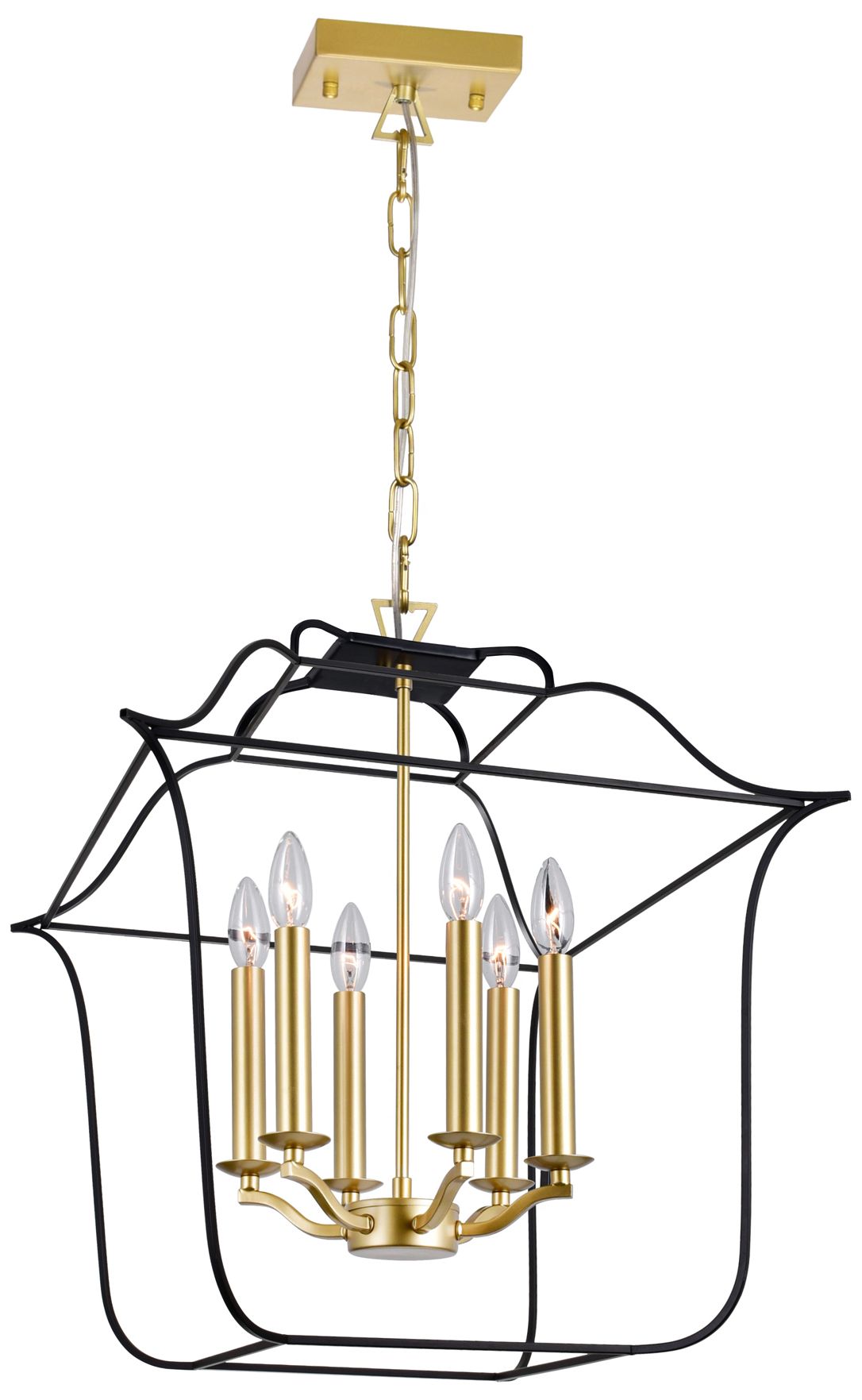 Tudor 6 Light 20in Satin Gold & Black Chandelier