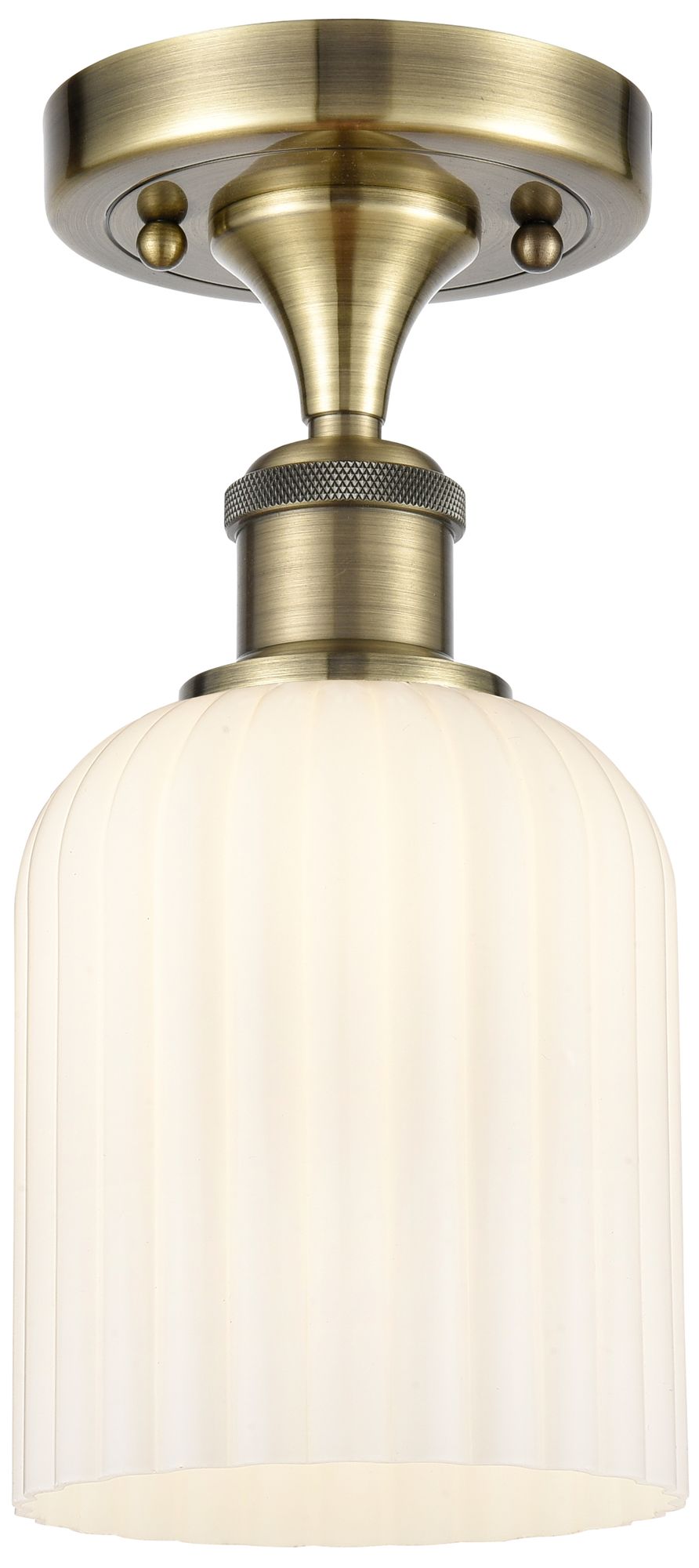 Ballston Bridal Veil 5" Semi-Flush Mount Antique Brass Gloss White Shade