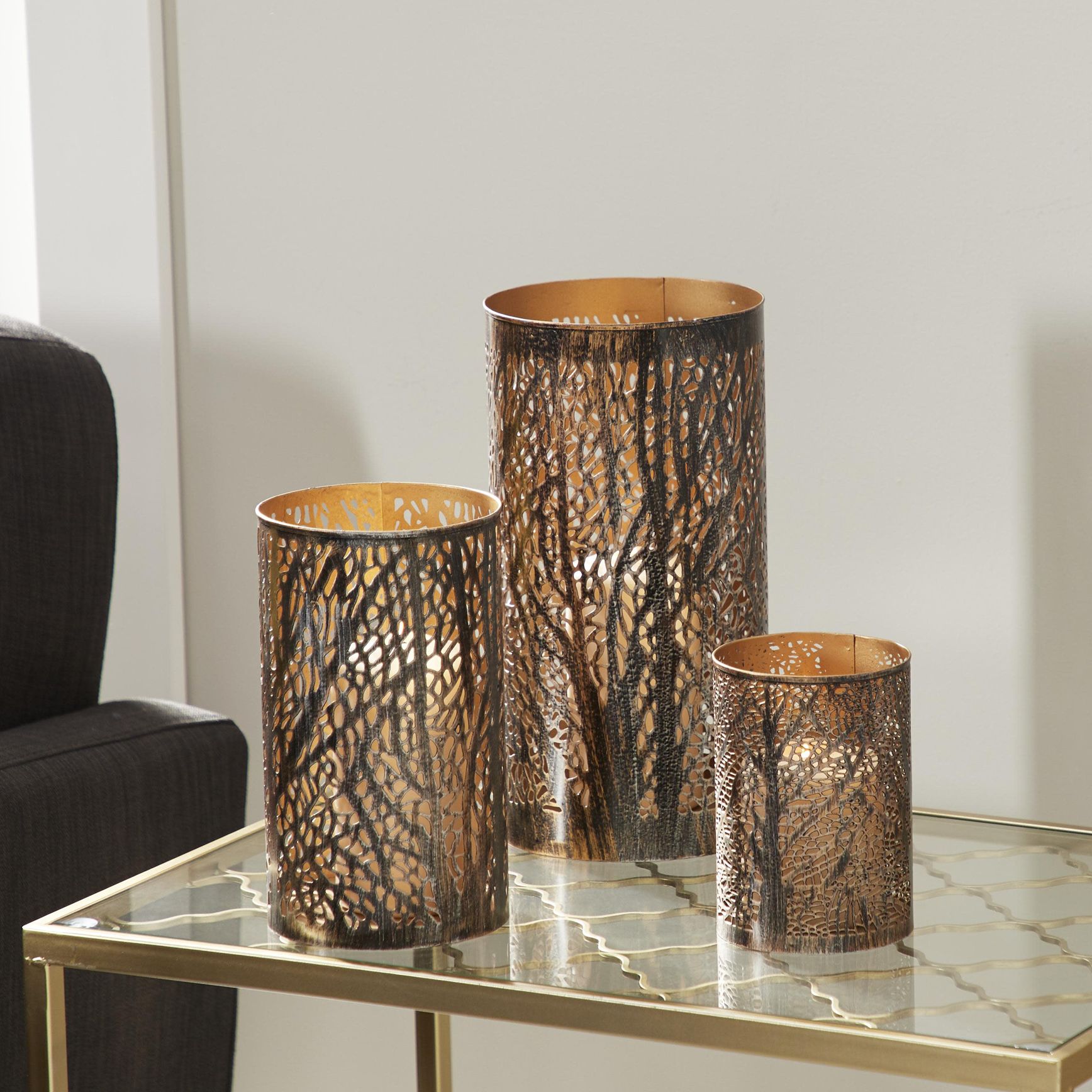 Bronze Metal Eclectic Candle Lantern, S/