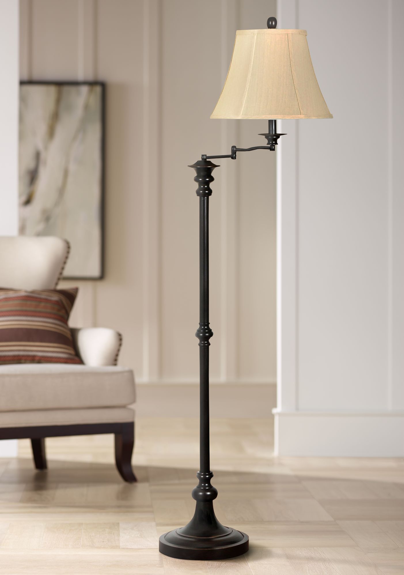 Menlo 62" Cream Fabric Shade Bronze Swing Arm Floor Lamp