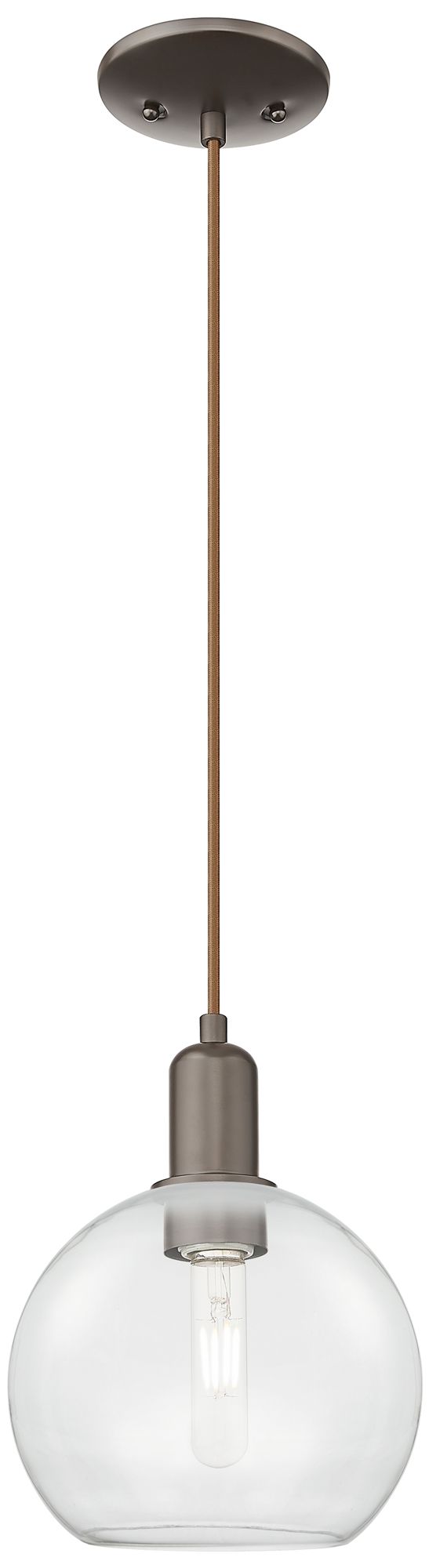 Arcadia Athens 8"W Oiled Bronze Cord Hung Mini Pendant w/ Clear Shade