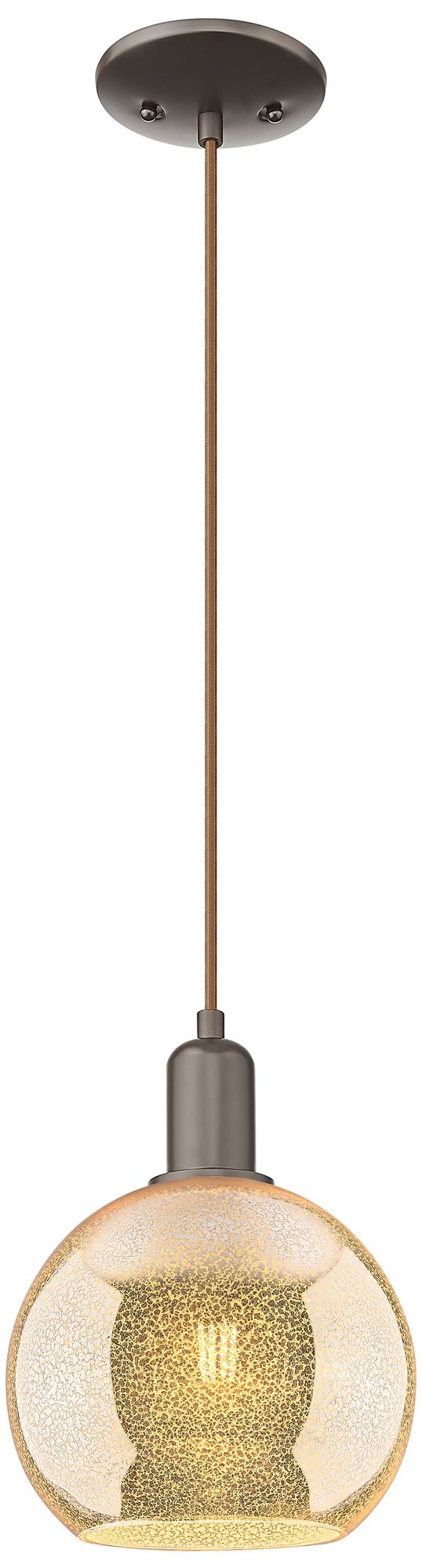 Arcadia Athens 8"W Oiled Bronze Cord Mini Pendant w/ Mercury Shade