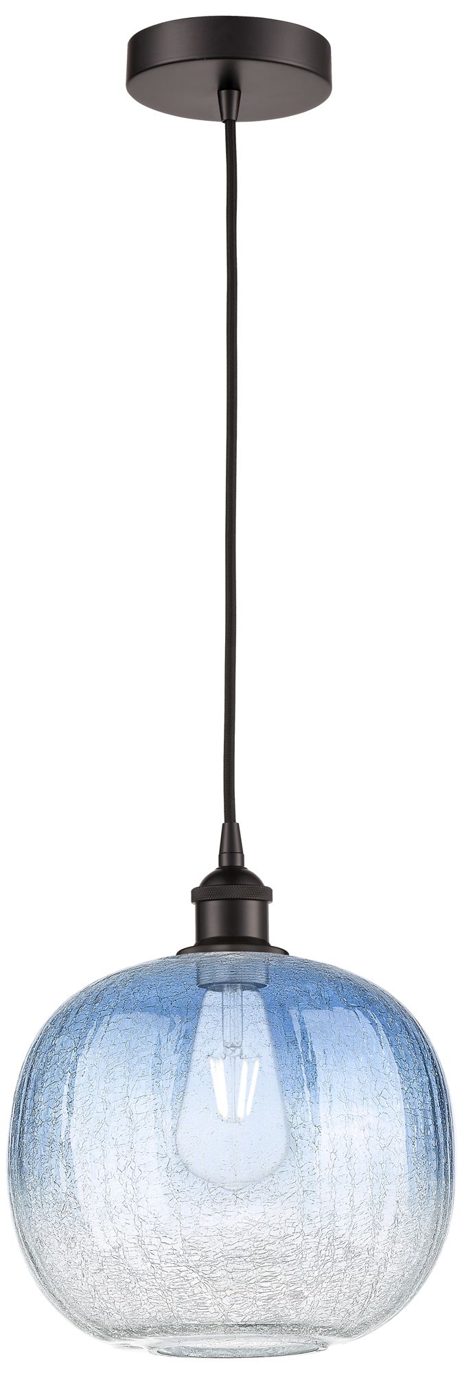 Edison Brookhaven Sphere 11"W Oiled Bronze Cord Pendant w/ Sapphire Shade