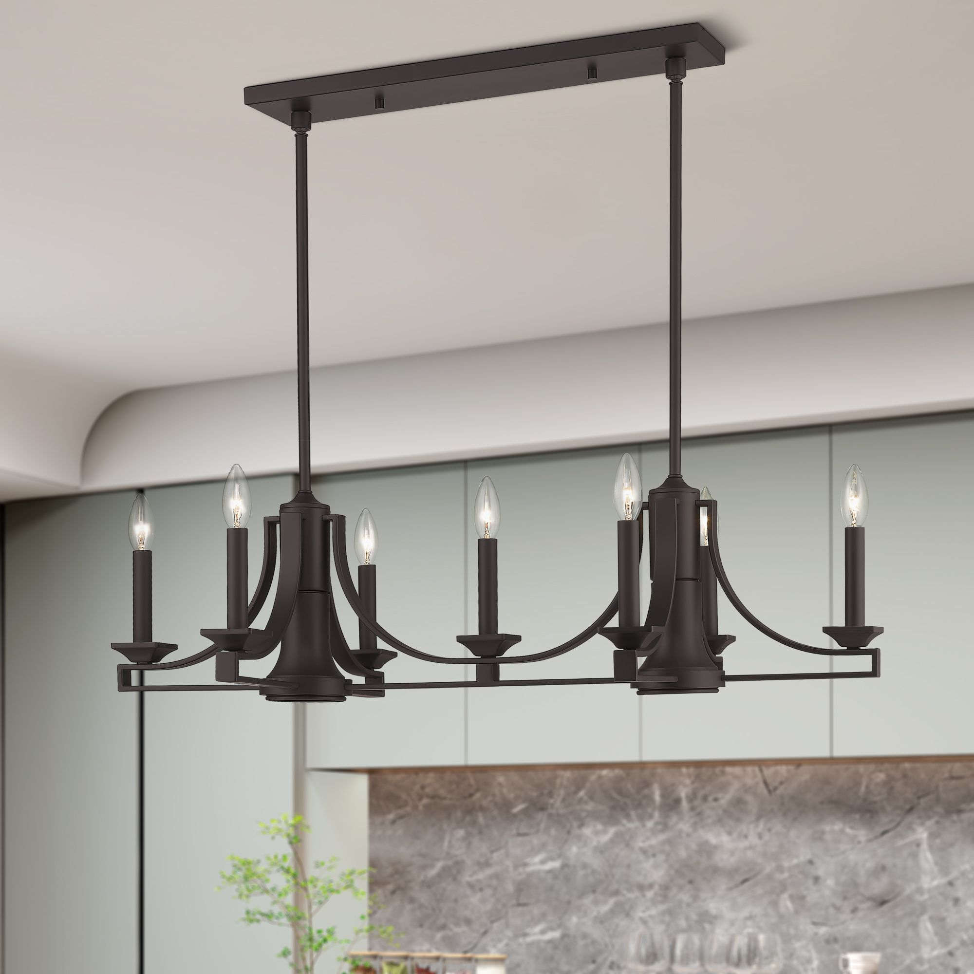 9 Light Bronze Linear Chandelier