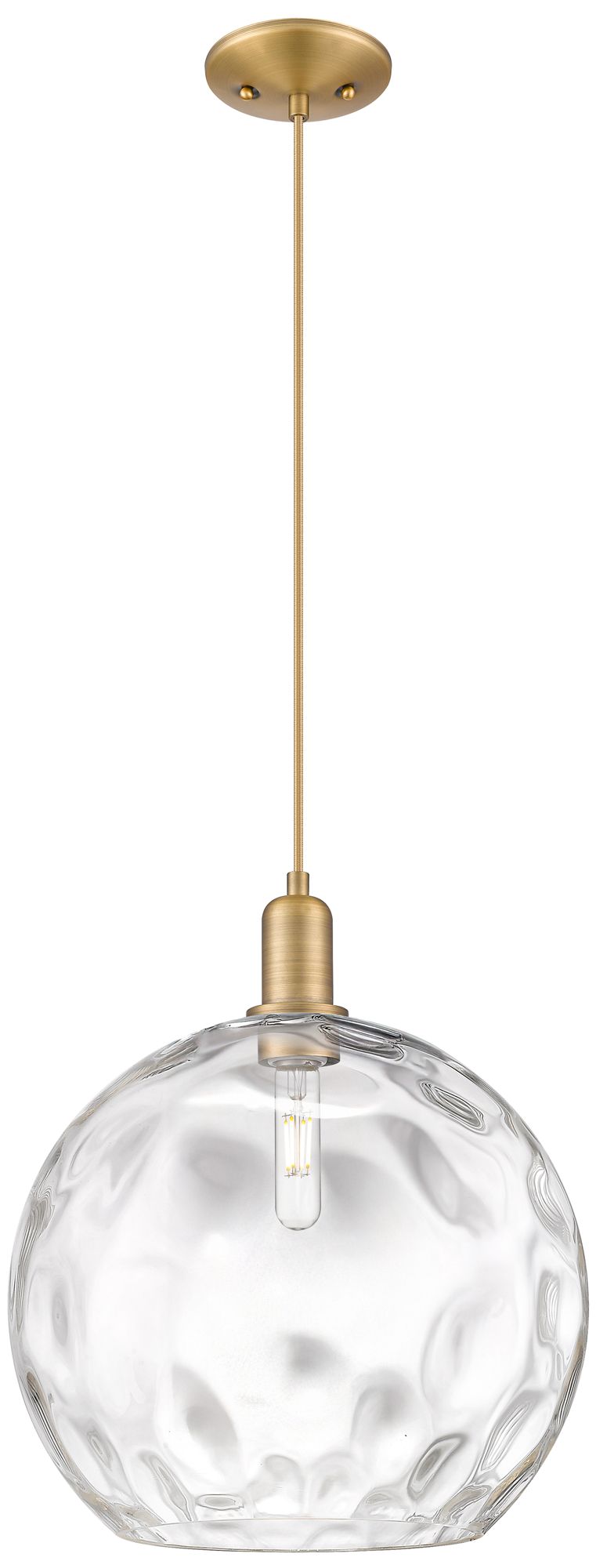 Arcadia Athens 13"W Brushed Brass Cord Pendant w/ Water Glass Shade